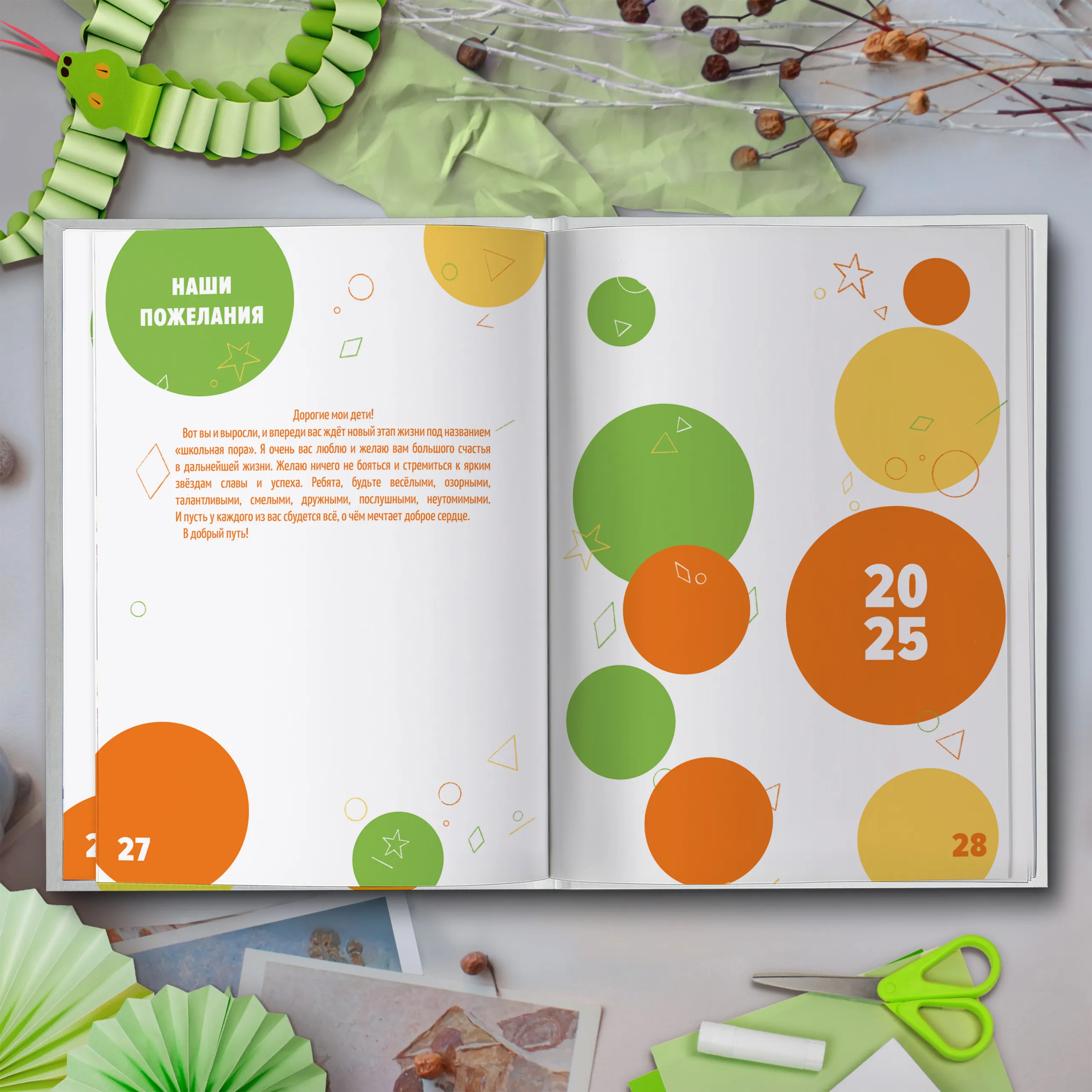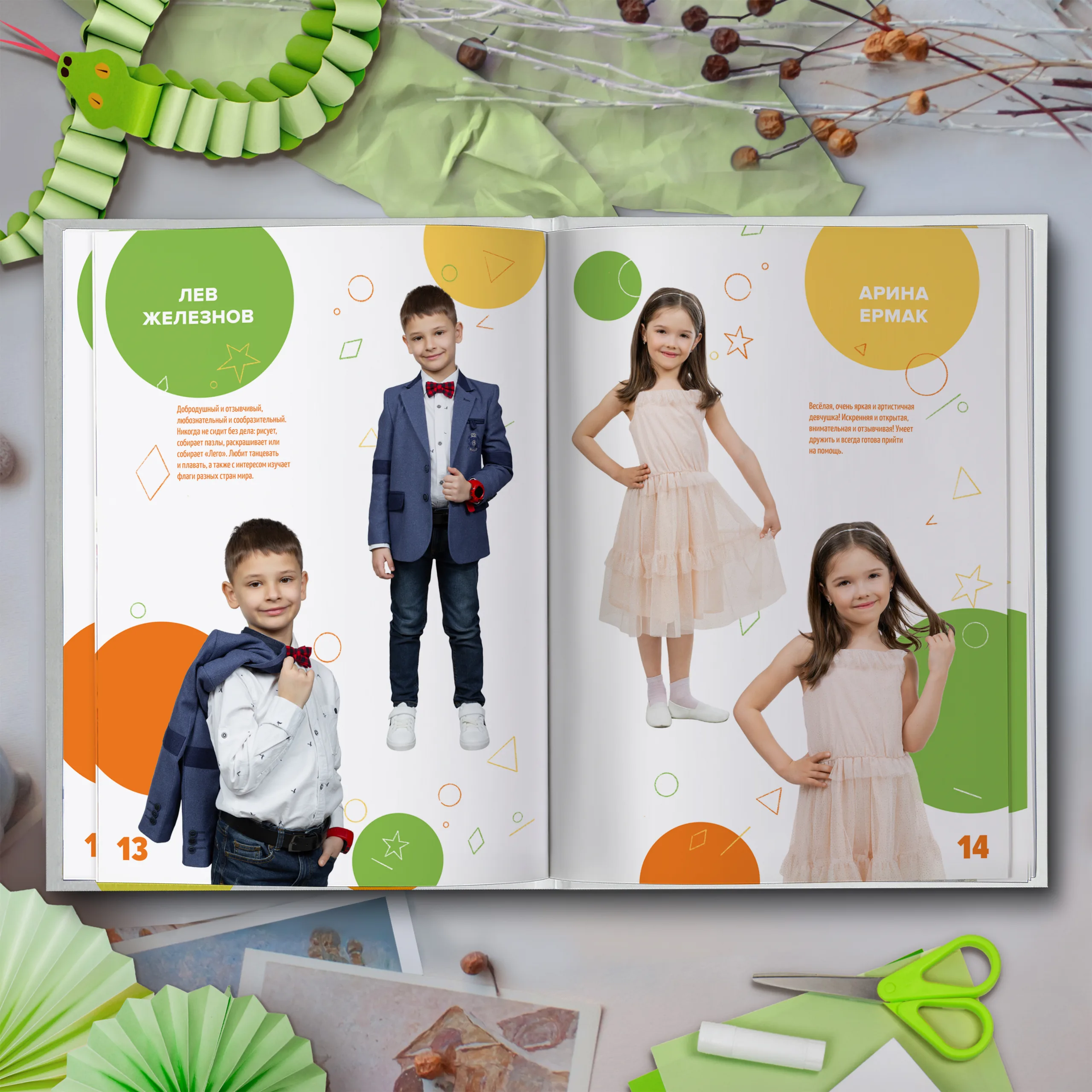 3ий разворот и далее — по 2 личные страницы на ребенка
