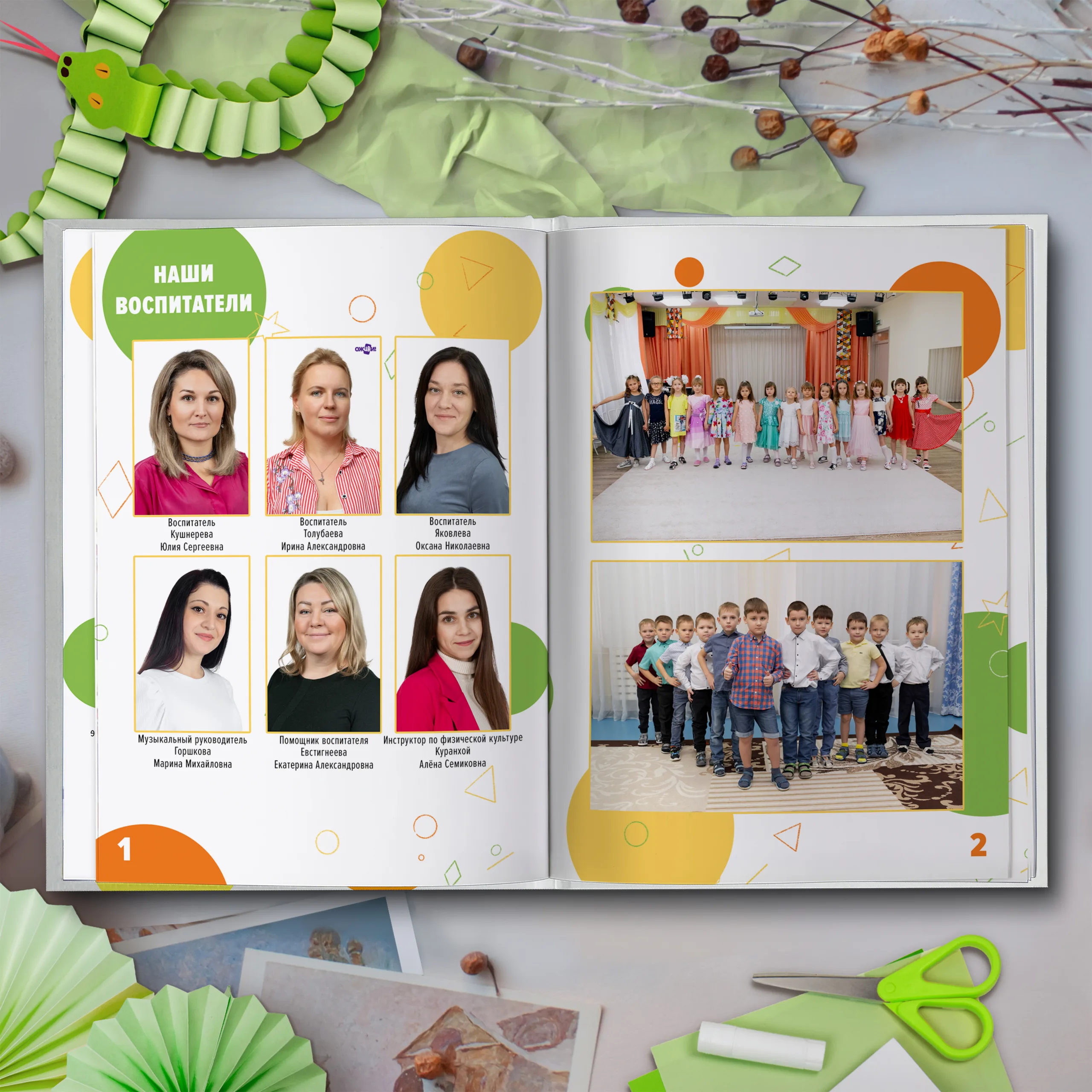 1ый разворот — виньетки педагогов и две общие фотографии
