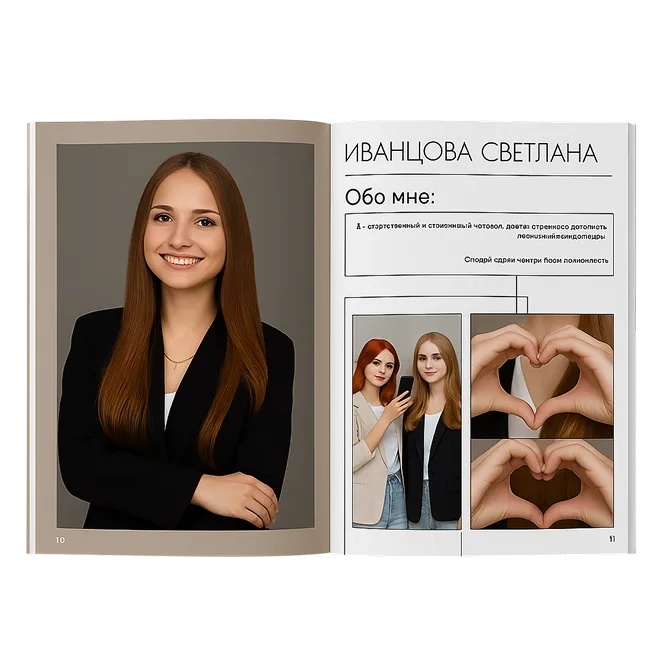 В нашей коллекции — 9 дизайнов, включая форматы «Премиум», «Персона», «Статус», «Тренд» и другие современные стили. Все макеты включают индивидуальные портреты выпускников, групповые виньетки, репортажные фотографии и фото классного руководителя.